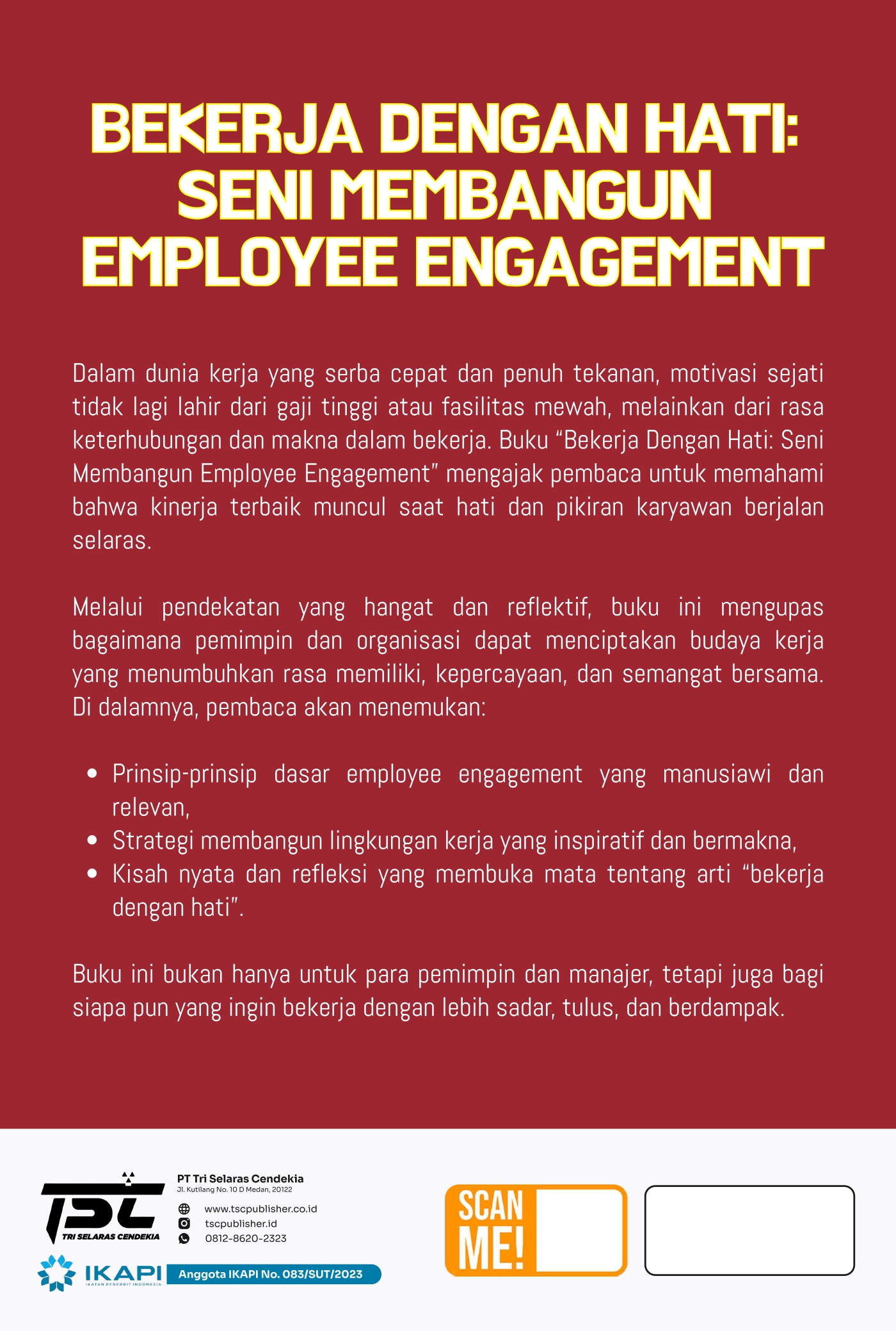 Konsep bekerja dengan hati lahir sebagai bentuk refleksi terhadap realitas tersebut. Bekerja dengan hati berarti mengembalikan esensi kemanusiaan dalam pekerjaan: menghadirkan empati, makna, dan hubungan yang tulus di tempat kerja. Di tengah tekanan kompetisi bisnis, organisasi sering kali melupakan bahwa keberhasilan sejati tidak hanya bergantung pada strategi, teknologi, atau sistem, melainkan pada manusia yang menggerakkannya. Karyawan yang bekerja dengan hati tidak sekadar menjalankan tugas, melainkan menyalurkan energi, nilai, dan identitas dirinya ke dalam pekerjaan. Mereka menemukan kebahagiaan dalam berkontribusi, dan dari sanalah muncul kinerja yang berkelanjutan. Oleh karena itu, membangun employee engagement bukan lagi sekadar tugas departemen HR, melainkan sebuah seni kepemimpinan dan budaya organisasi yang menempatkan manusia sebagai pusat keberhasilan.