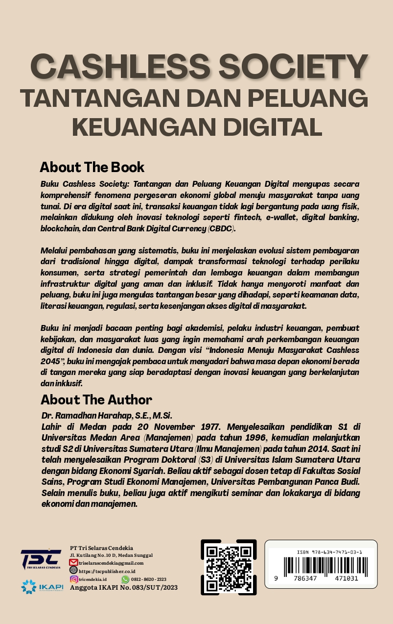 Perkembangan teknologi informasi dan komunikasi telah membawa perubahan besar dalam berbagai aspek kehidupan manusia, termasuk dalam sistem keuangan dan transaksi ekonomi. Salah satu transformasi paling signifikan adalah munculnya konsep cashless society atau 1 masyarakat tanpa uang tunai. Fenomena ini ditandai dengan berkurangnya penggunaan uang fisik seperti kertas dan koin, yang digantikan oleh transaksi digital melalui kartu debit, kartu kredit, dompet elektronik (e wallet), aplikasi perbankan digital, serta sistem pembayaran berbasis kode QR dan teknologi nirsentuh (contactless payment).