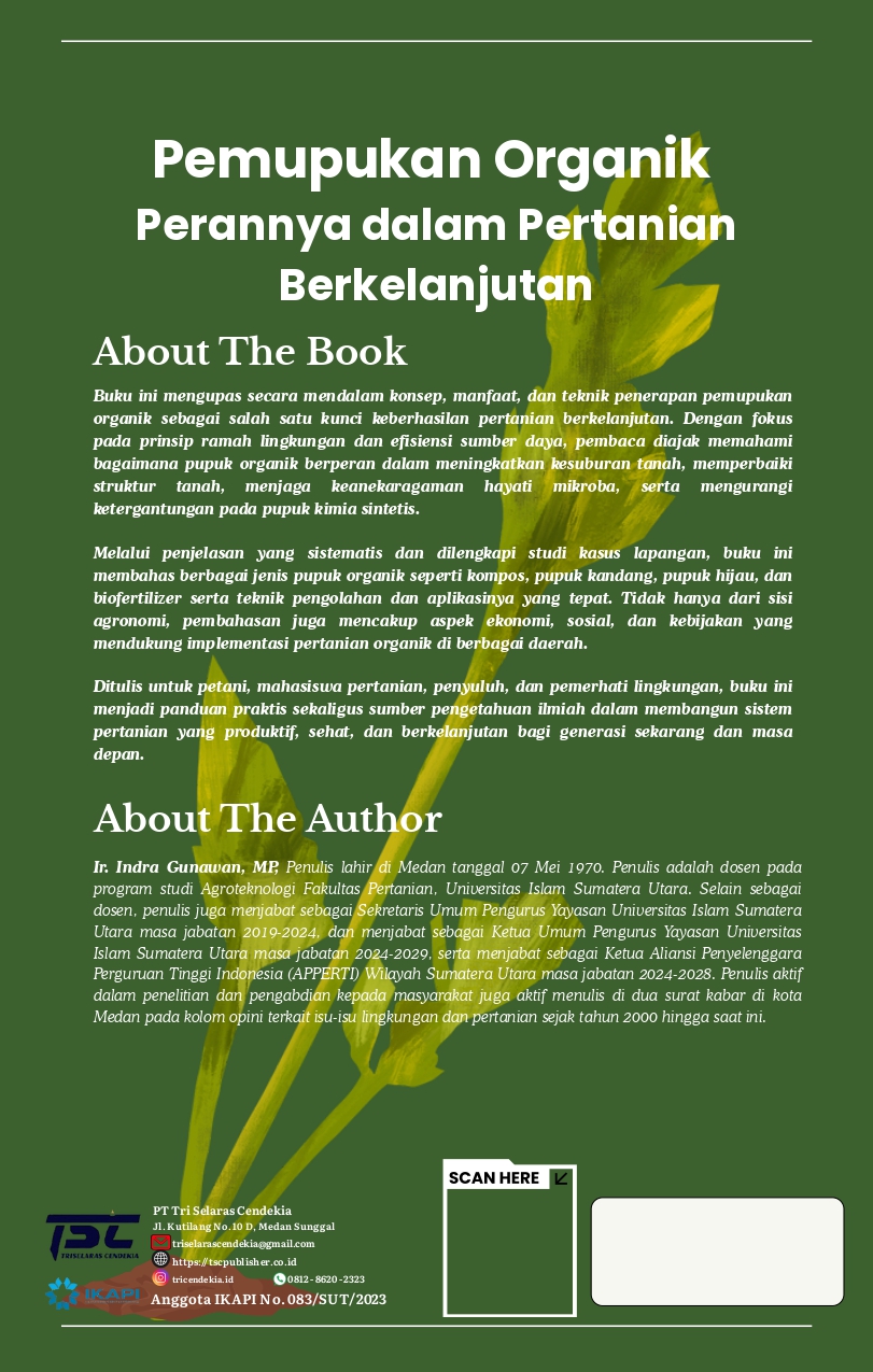 Pertanian merupakan salah satu sektor fundamental yang menopang ketahanan pangan, stabilitas ekonomi, dan kesejahteraan sosial masyarakat global. Seiring dengan meningkatnya pertumbuhan penduduk dan kebutuhan pangan yang semakin kompleks, praktik pertanian konvensional sering kali dihadapkan pada berbagai tantangan serius, termasuk degradasi lahan, penurunan kesuburan tanah, pencemaran lingkungan, serta emisi gas rumah kaca. Kondisi tersebut memicu urgensi untuk mengembangkan pendekatan baru yang tidak hanya berorientasi pada peningkatan produksi, tetapi juga memperhatikan keberlanjutan ekosistem dan keseimbangan sosial- ekonomi petani.